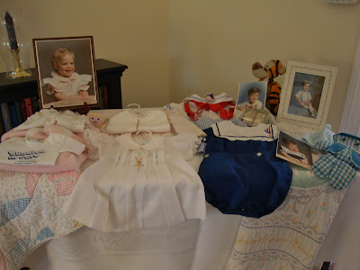 In addition to the tiny shoes hanging from the chandelier, both moms had baby photos and baby clothes and blankets set out for everyone to admire! I wonder who this new baby girl will look like? I ponder whose eyes, smile, and personality she will share.